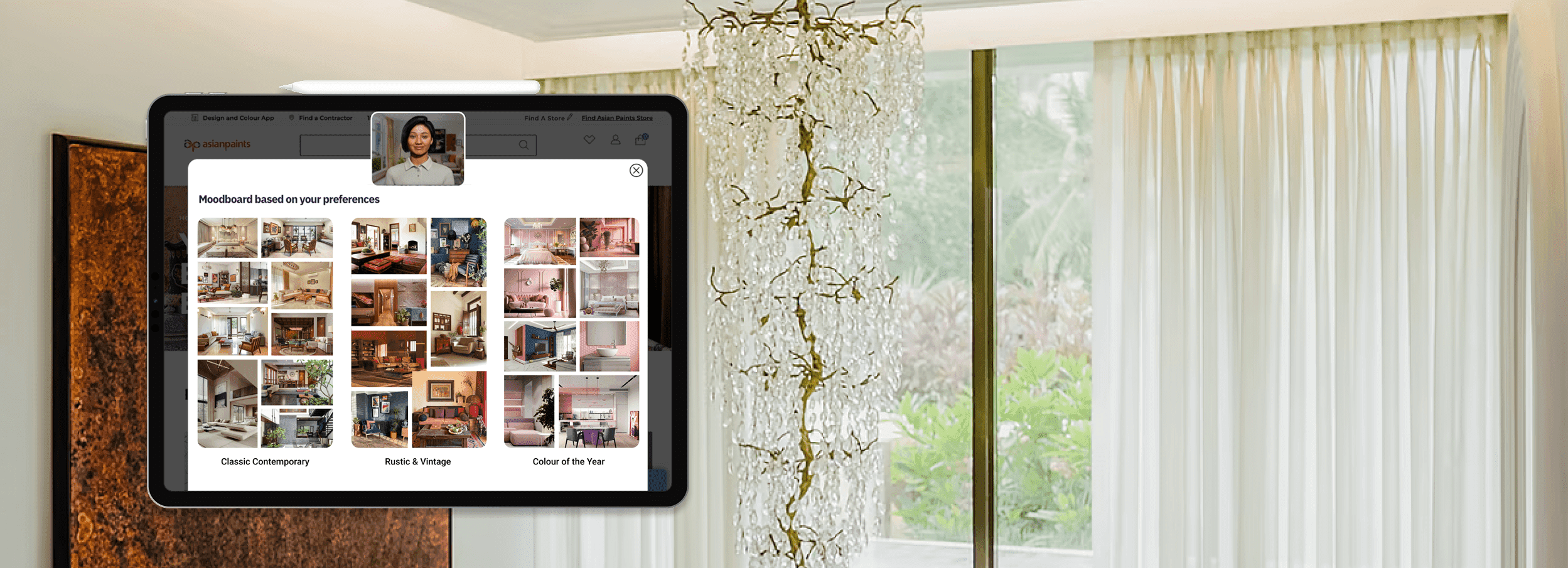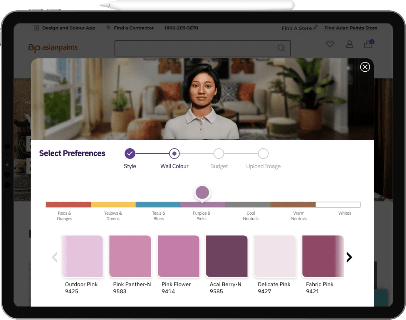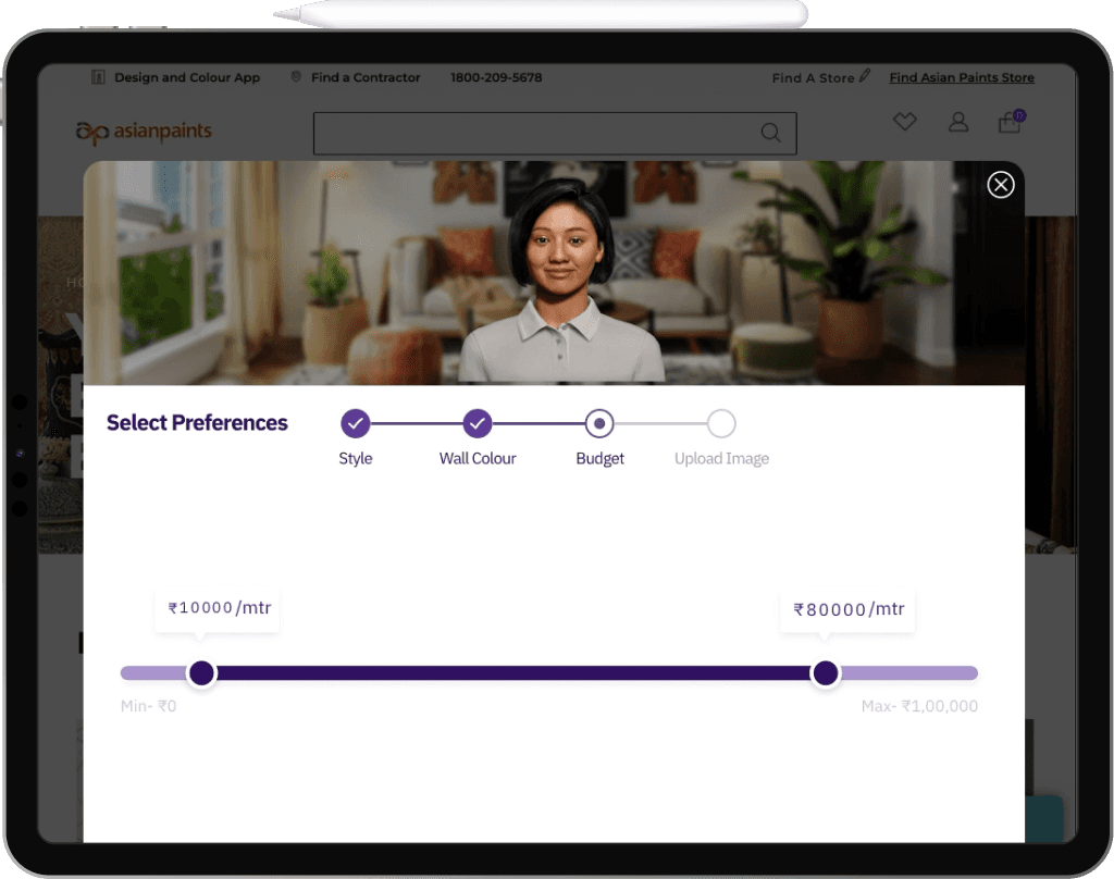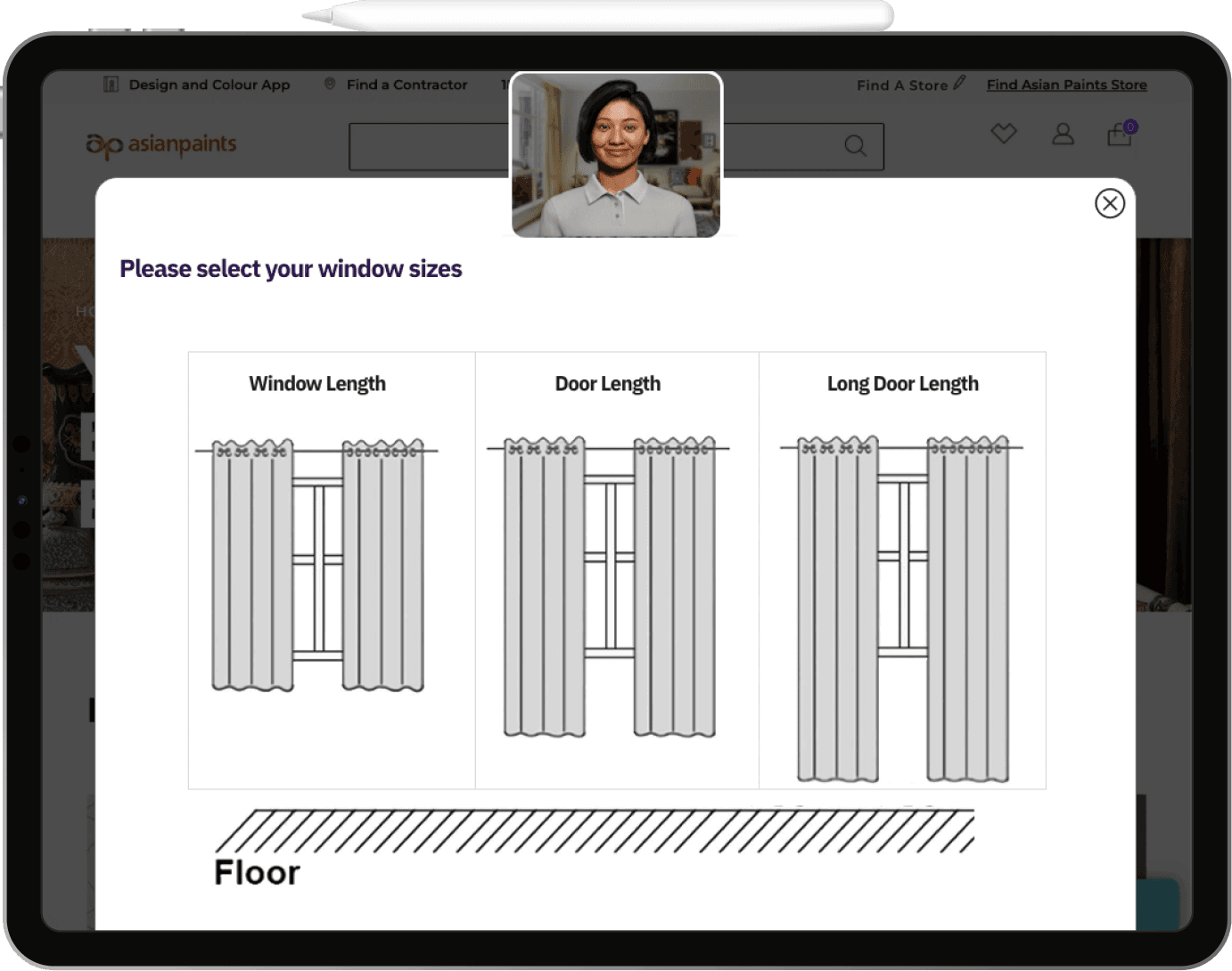 A pop-up interface was created for users to interact with a digital human assistant, acting as a sales rep, it guides users to suitable products, suggests color, texture, and material options, and helps with informed choices, store directions, and a seamless online-offline experience.