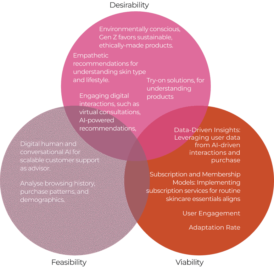 Personalised conversational AI that helps Gen Z users make clearer skincare decisions. Research revealed confusion, low product knowledge and a need for quick, trustworthy guidance. The solution uses a digital advisor that supports voice and text to deliver simple, tailored recommendations, by reducing uncertainty and making guidance feel accessible, the experience builds confidence, improves engagement and creates a smoother e-commerce journey.