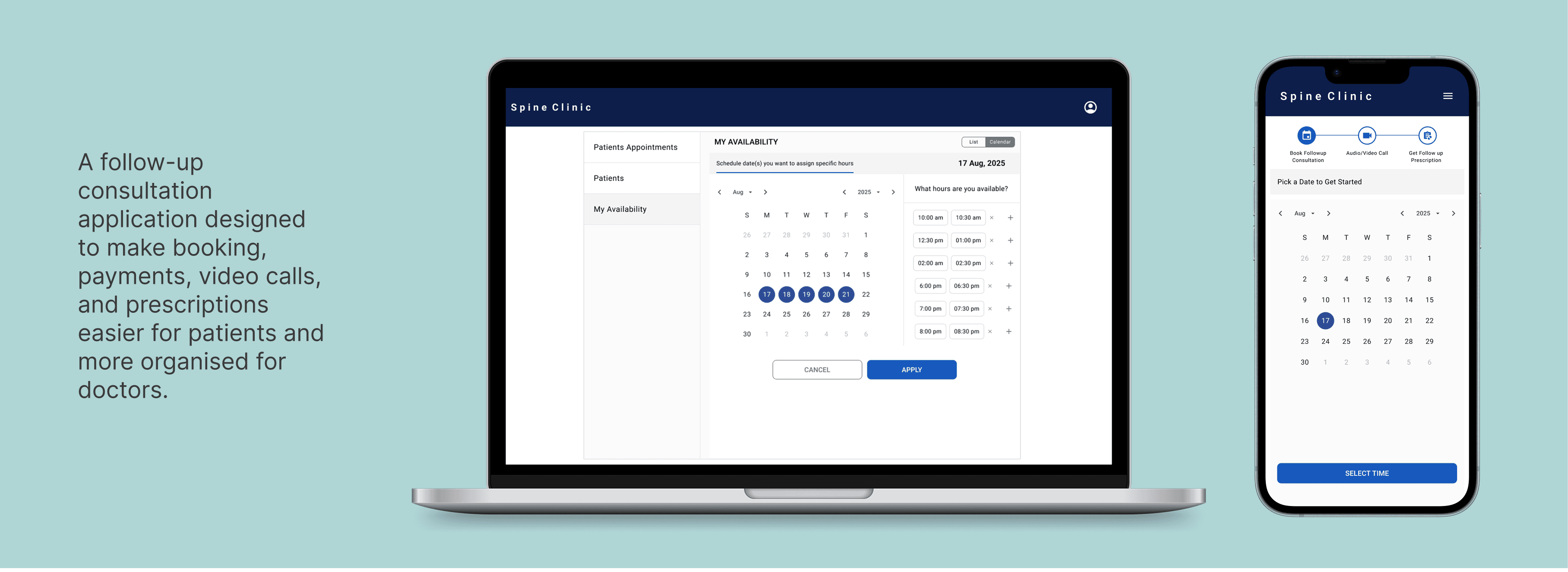 Doctors manage their availability through simple time-slot selection.