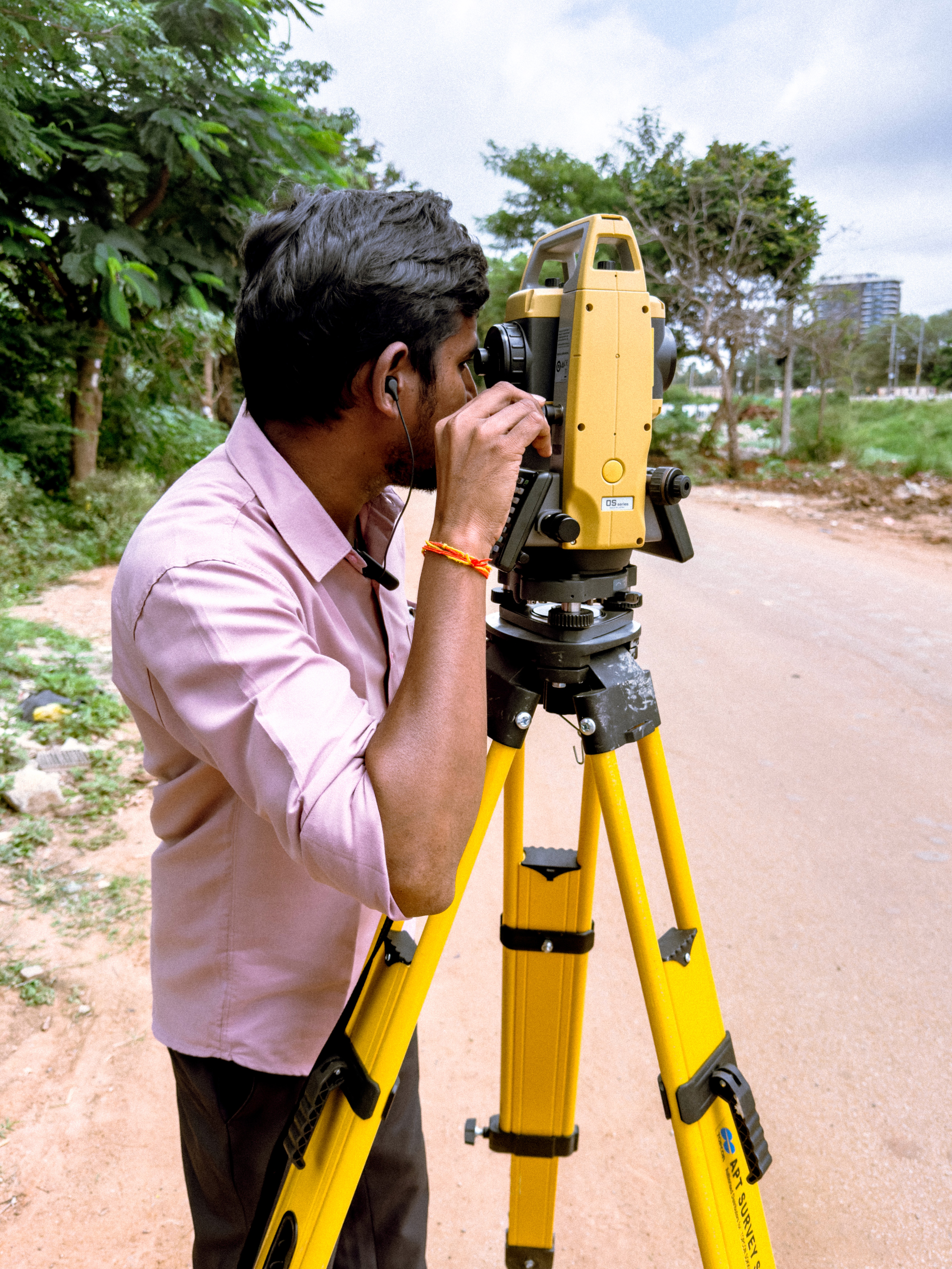 Walking near Sampigehalli railway gate, I saw a land survey team at work. I asked what they were doing, and they explained how the devices work and how the survey helps plan and design the area.