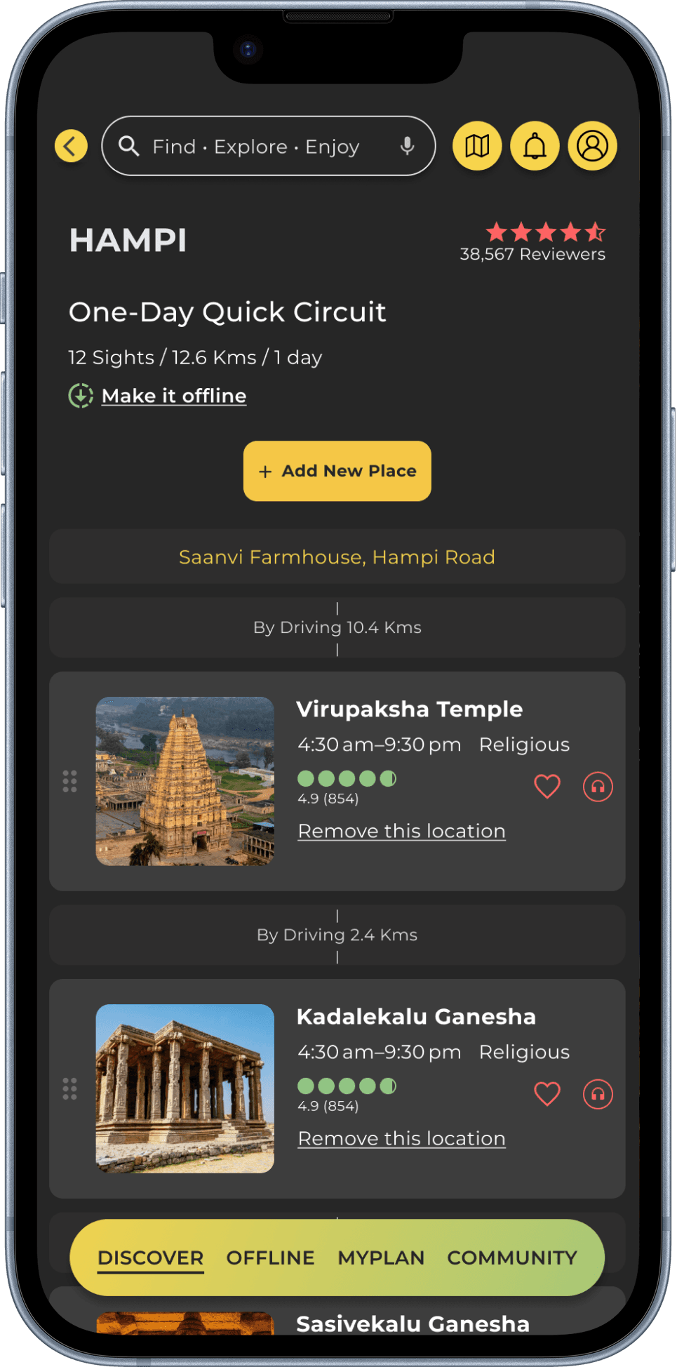 A timeline-based planner lets travellers add, reorder, and edit stops, the map view helps users understand routes and plan quickly.